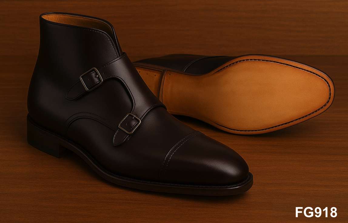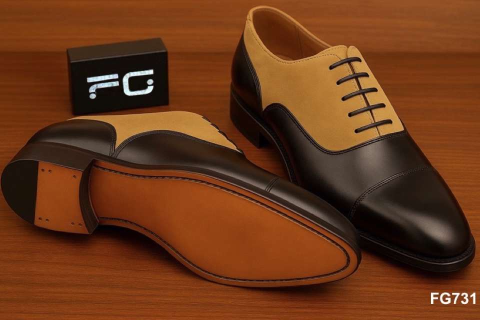 FG presenta su nuevo calzado con monograma personalizado y logotipo propio, así como pantuflas de terciopelo con embalaje personalizado de alta calidad. Consulte la lista de precios hoy mismo. Incluye zapatos a medida, zapatos a medida, zapatos listos para usar, zapatos brogue, brogue derby, derby liso, mocasines de terciopelo con borlas , zapatos Oxford, zapatos Oxford derby, zapatos de salón, botas de montar, etc. Utilizamos materiales de la más alta calidad, incluyendo pieles exóticas como caimán y pitón, becerro box, becerro bebé, napa flor de becerro francés, cuero vacuno teñido en tambor, etc. También disponemos de marca blanca . Al centrarnos en el mercado local, elevamos el nivel de la fabricación de calzado... con una mentalidad "clásica", una combinación de influencias modernas, mano de obra de eficacia comprobada y una ética de trabajo excepcional, lo que nos permite producir constantemente calzado de primera calidad.