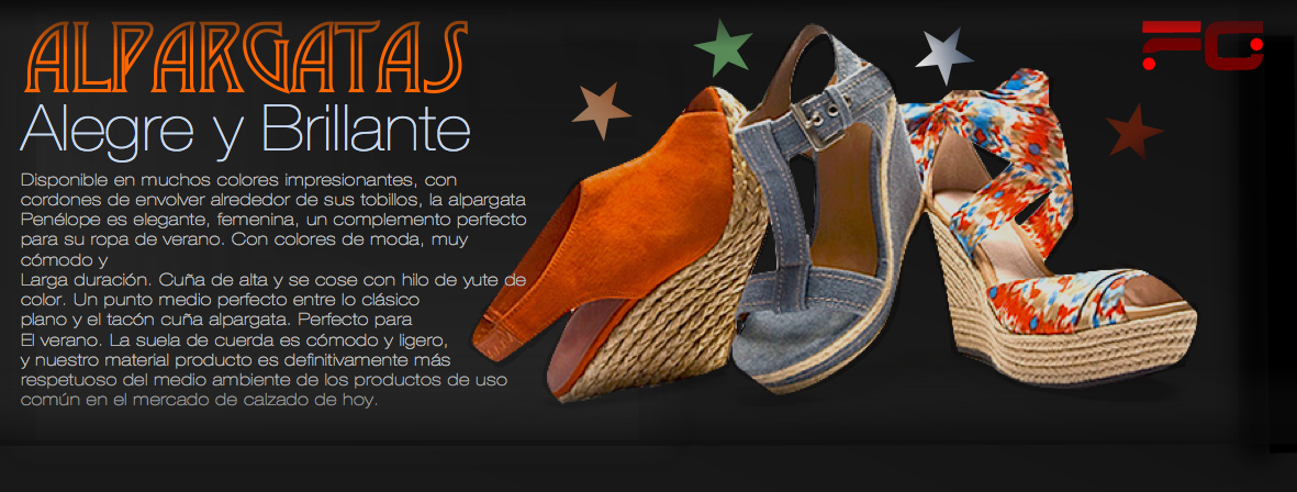 FG Shoes no tiene miedo de divertirse con los colores y la creación de diseños atrevidos. Ahora es más divertido, animado y atrevido, y al mismo tiempo, lo hacemos con clase y elegante. Mujeres acaba de caer en amor con nuestra amplia gama de collections.A estilos y precios, algo para objetivos everyone.Our principales para cada temporada son el diseño innovador, materiales de calidad, versatilidad y excelente servicio. No se pierda nuestra Otoño / Invierno 2013 Collection.Our línea de la firma ofrece una amplia gama de missy, contemporáneo separa en cuero genuino arte wearable zapatos hechos a partir de una patente de telas con texturas de terciopelo, bordados y un toque de arte pintada a mano de seda.